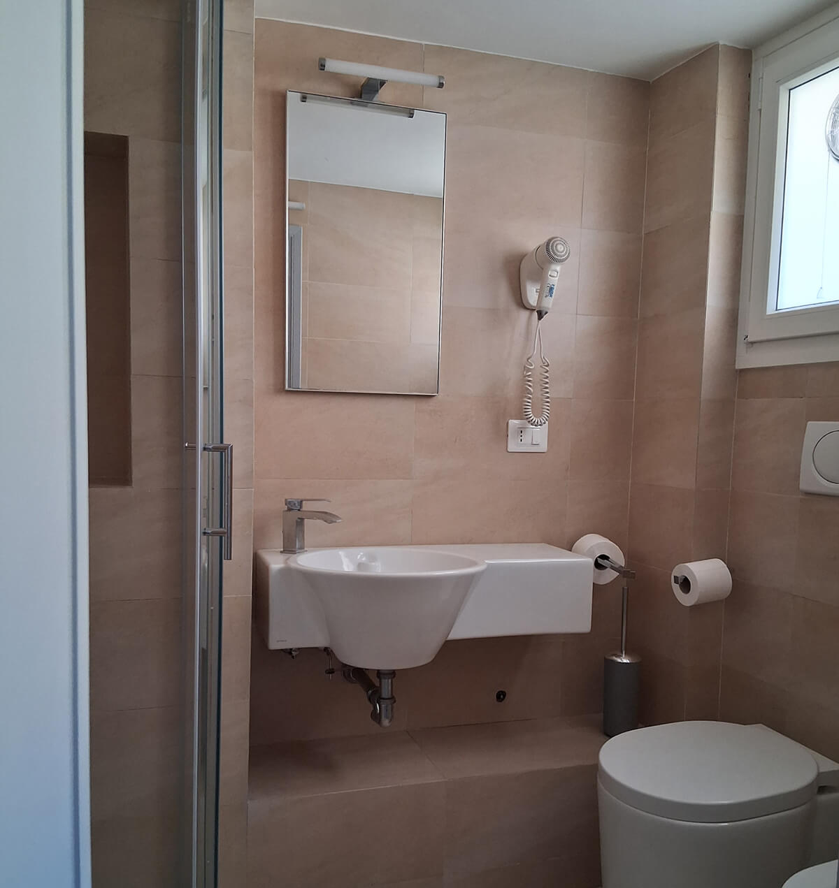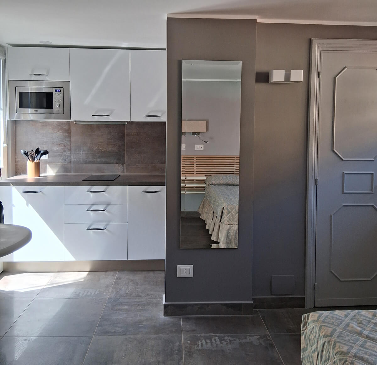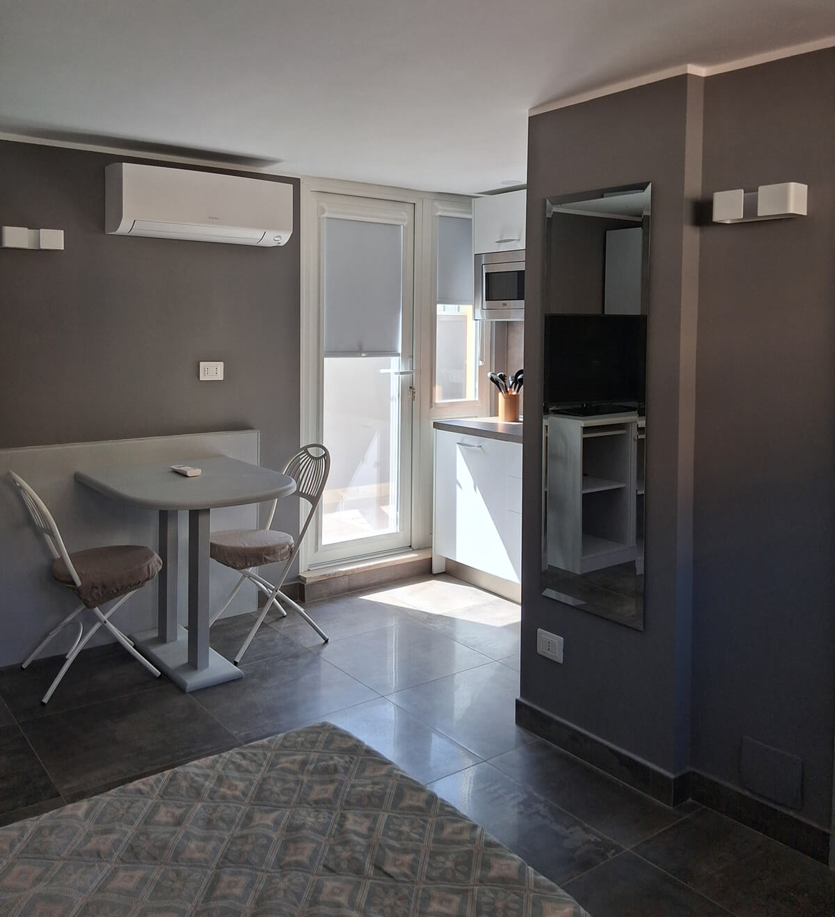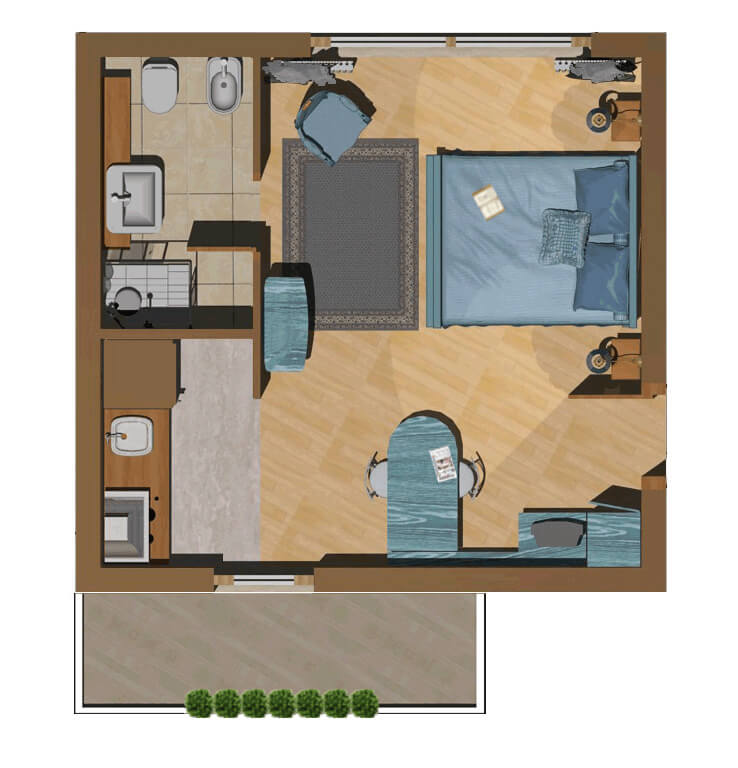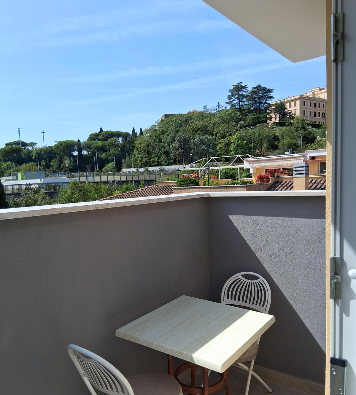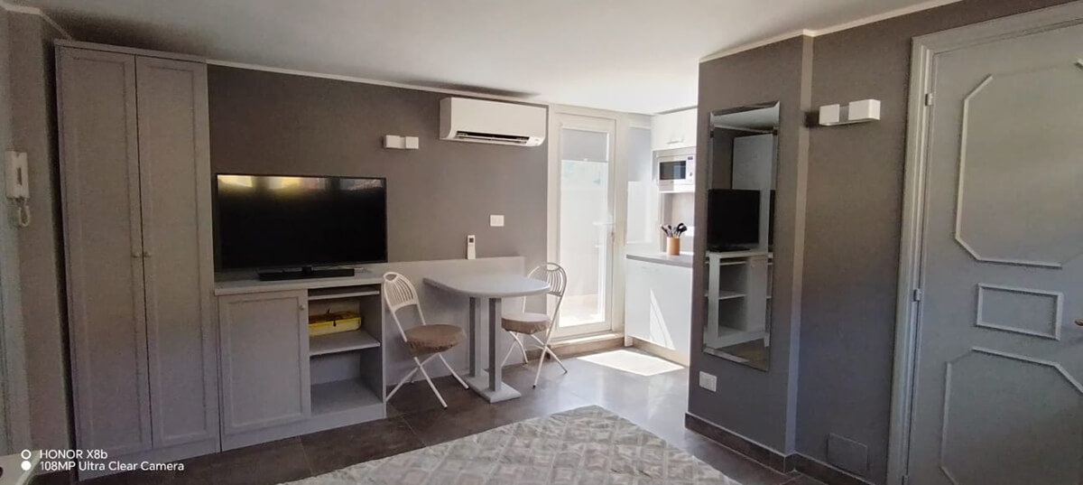1 o 2 persone Monolocale confortevole, curato e luminoso, con doppia esposizione. Questa soluzione garantisce relax e privacy. Particolarmente adatto a chi viaggia da solo, uomini d’affari e coppie. Ha un piccolo balcone. Il monolocale si trova al 4° piano della palazzina “A”. L’ascensore si ferma al 3° piano, pertanto occorre salire una rampa di scale. Gli ospiti possono fruire sia del giardino condominiale, sia degli spazi esterni privati, compreso il panoramico Roof garden con vista sulla cupola di San Pietro.